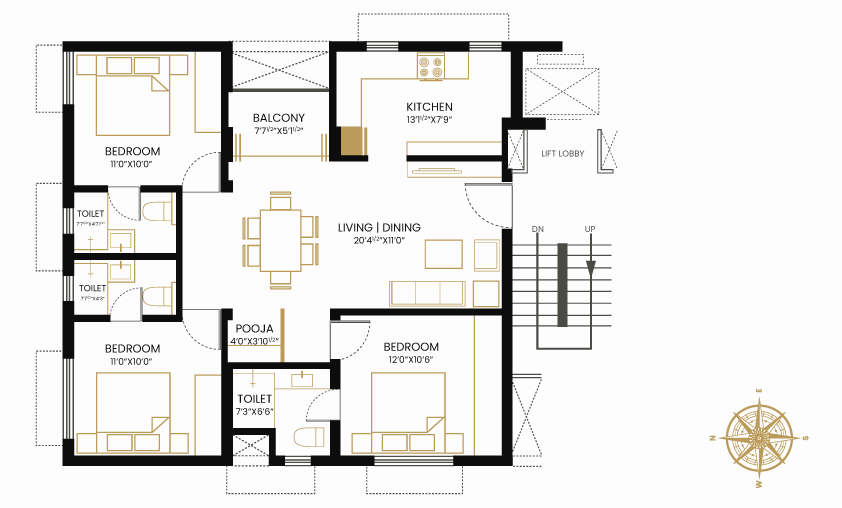 Indus Vakshathalam is an exclusive residential enclave where contemporary sophistication meets serene luxury. From the moment you arrive, the architecture sets a refined tone an elegant composition of warm wood accents and expansive glass that reflects understated grandeur. Designed for discerning lifestyles, each residence is meticulously planned with a no space wastage philosophy, ensuring that every home feels expansive, efficient, and indulgent. Thoughtful detailing, balanced proportions, and modern design come together to create a private sanctuary that is both visually striking and effortlessly livable.